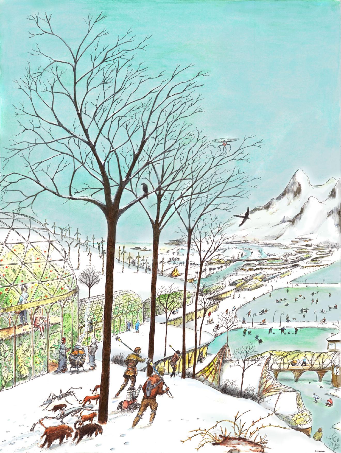 Polarpunk is a subgenre of solarpunk. While you could simply call it ”solarpunk winters” I’ve decided to expand on the subject a bit. I realized that there wasn’t a lot of conversation or media about the winters of a solarpunk world, and I wanted to throw my hat into the bucket and write about what I think polarpunk means, some aesthetics, inspiration, and real world stuff you can do!